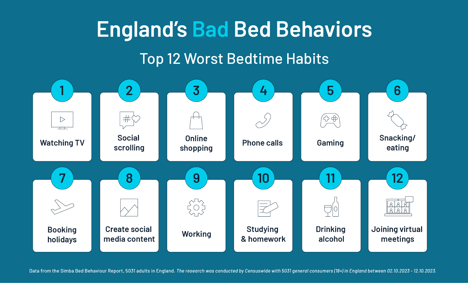 New data reveals that less than a quarter of adults in England use their mattress for sleep, sickness and sex alone; the only three bedtime habits recommended by experts for a good quality sleep.